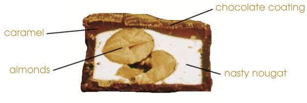 bar. One could munch bites of the Mars bar with or without almonds or pick